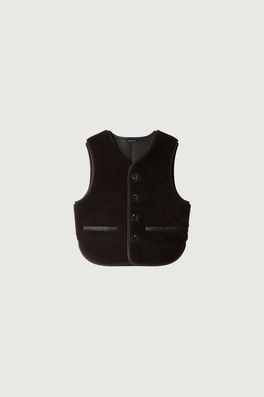 - Sleeveless jacket with a straight cut.