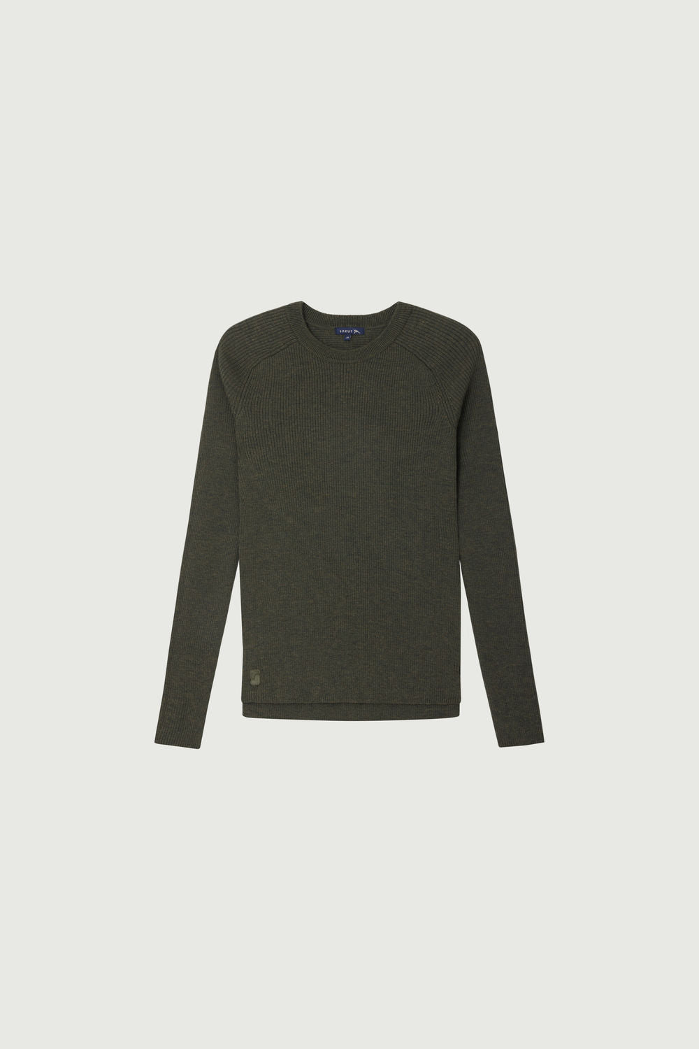 VERONA is a merino wool jumper with long sleeves, designed to be fitted and featuring a ribbed knit effect. It stands out with its side slits, adding a modern twist to its classic cut. Adorned with our tonal signature, it's a timeless piece that combines elegance and comfort.
