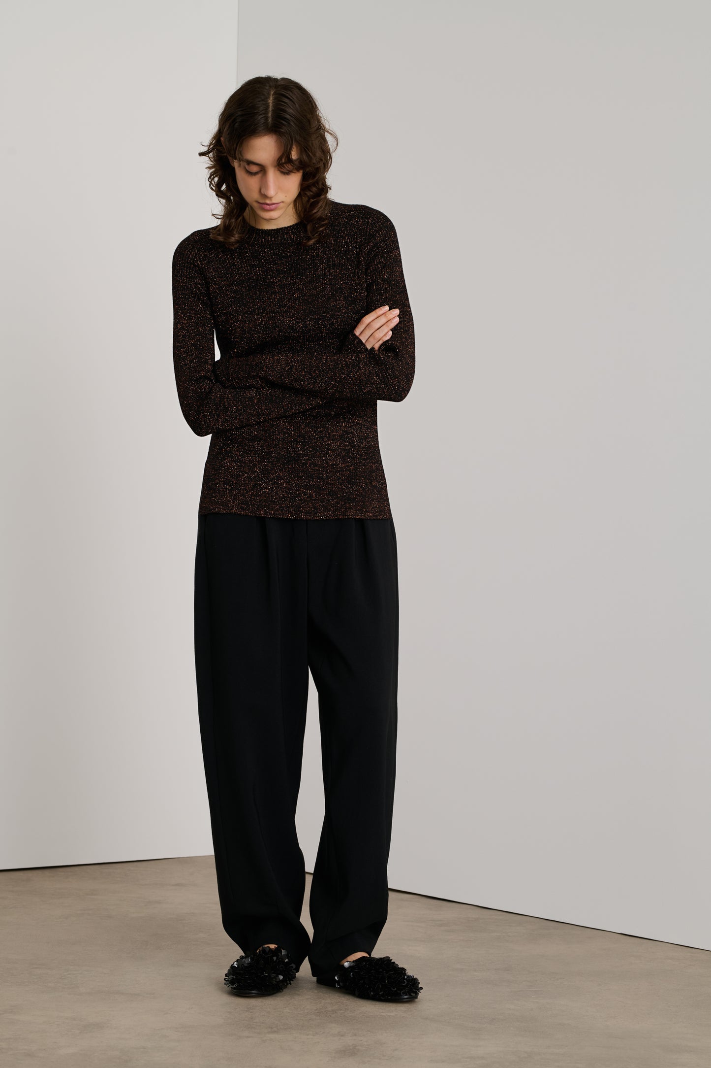 Lurex ribbed long sleeve sweater