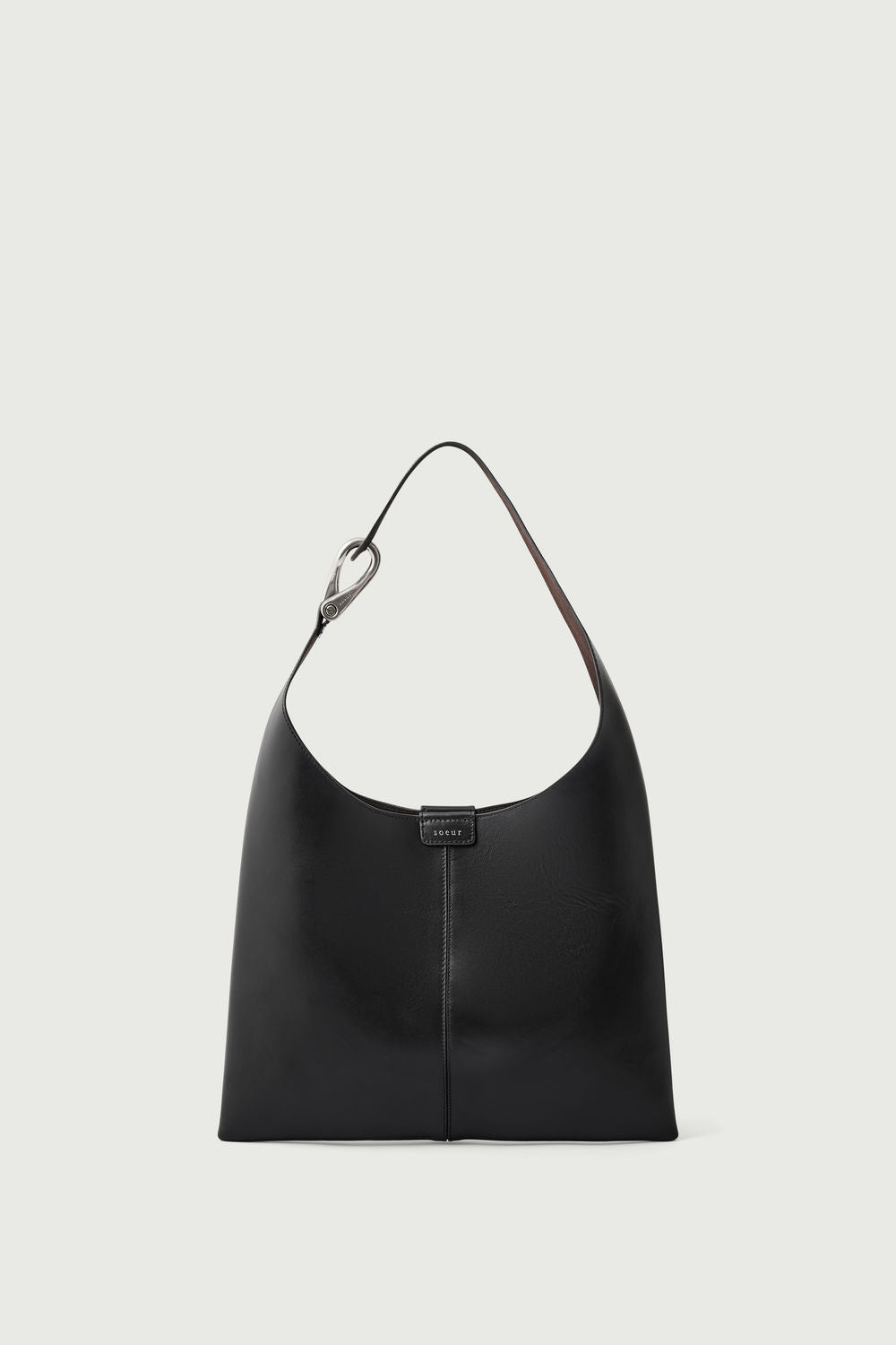 Smooth black leather bag with silver metal piece black